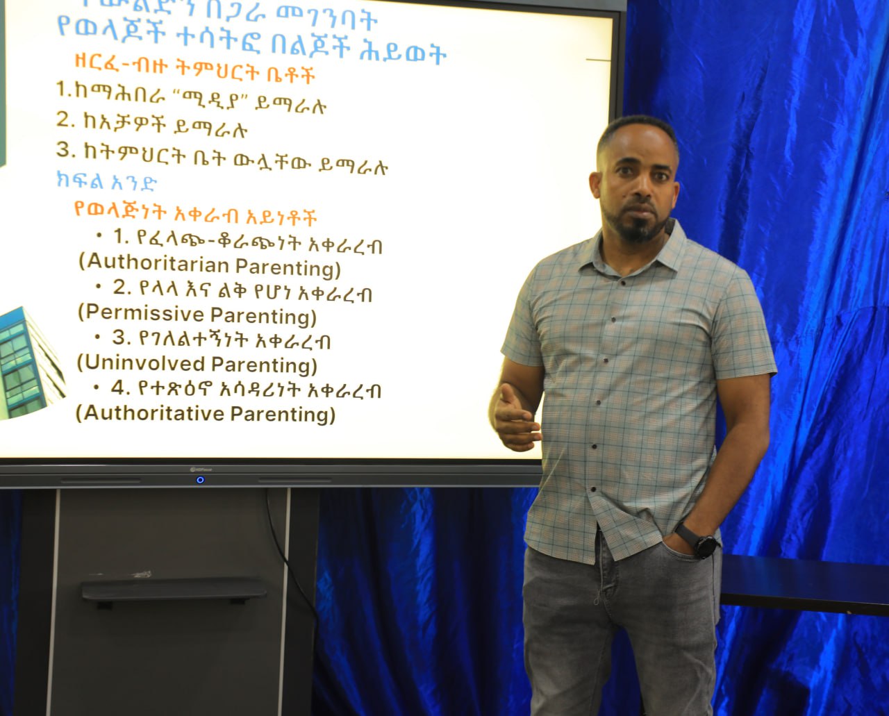 ልጆች ከሚማሩባቸው ዘርፈ-ብዙ ትምህርት ቤቶች ውስጥ ከማሕበራዊ ሚዲያ ፣ከአቻዎች ፣ እንዲሁም ከትምህርት ቤት ውሏቸው ሊማሩ እንደሚችሉ እና የወላጅነት አቀራብ አይነቶች የፈላጭ-ቆራጭነት (Authoritarian Parenting) ፣የላላ እና ልቅ የሆነ (Permissive Parenting) ፣የገለልተኝነት አቀራረብ (Uninvolved Parenting) እና የተጽዕኖ አሳዳሪነት (Authoritative Parenting) የሚባሉ የወላጅነት አቀራረብ አይነቶች እናዳሉ ም/ዲኑ አክለውም ገልፀዋል፡፡
